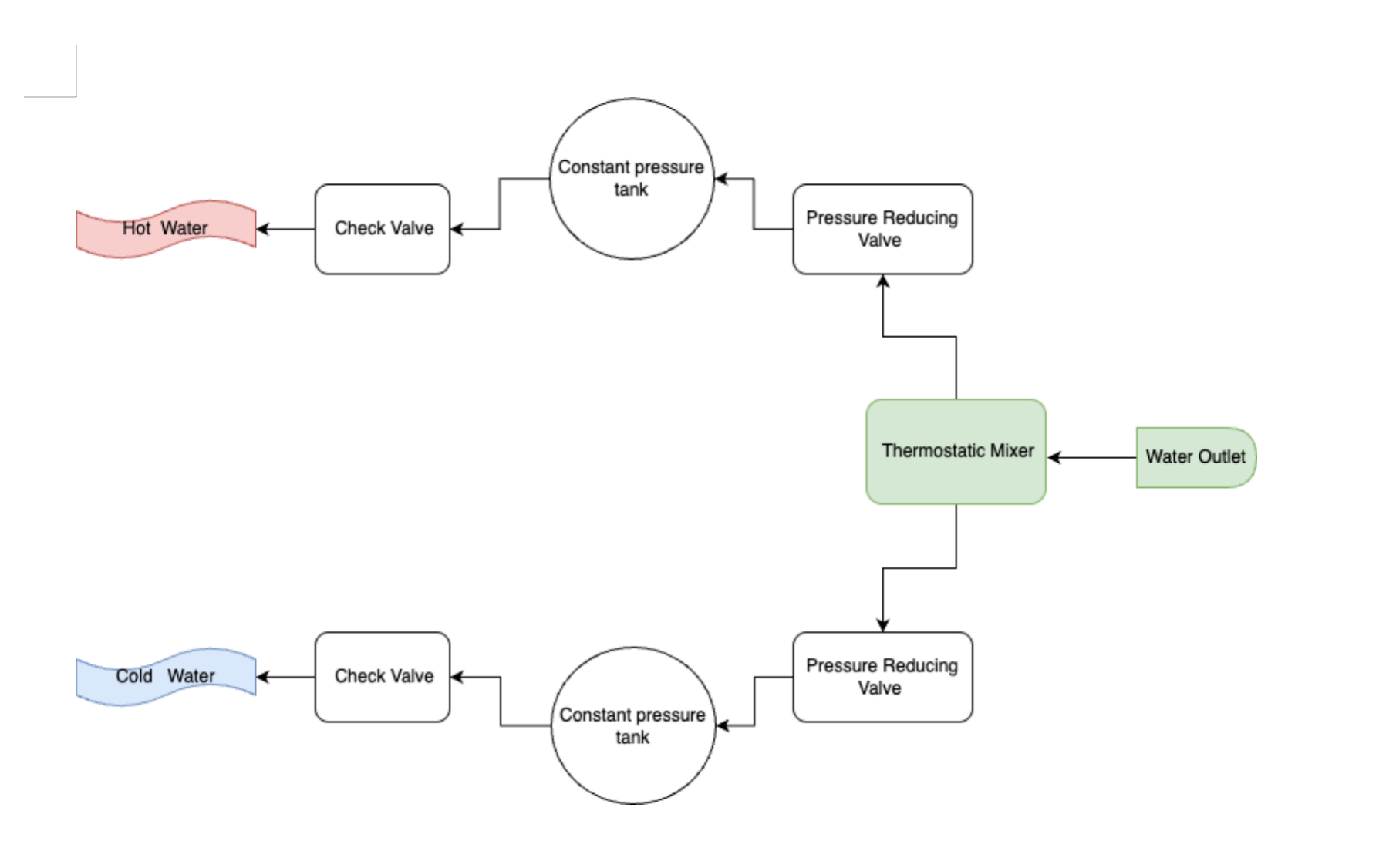 - Right (cold side) no water → cold water pipe blockage (long side).